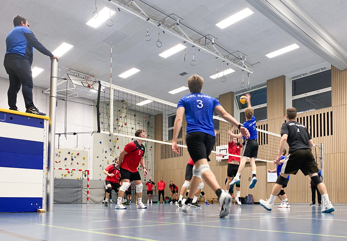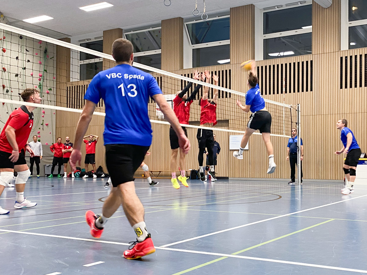 Die Bälle knallten auf beiden Seiten hart, in der Einfachhalle Kreuzbühl, unweit des Calatrava-Bahnhofs. Die jungen Spadisti und die erfahrenen Voléro-Cracks boten Regionalliga auf Speed.